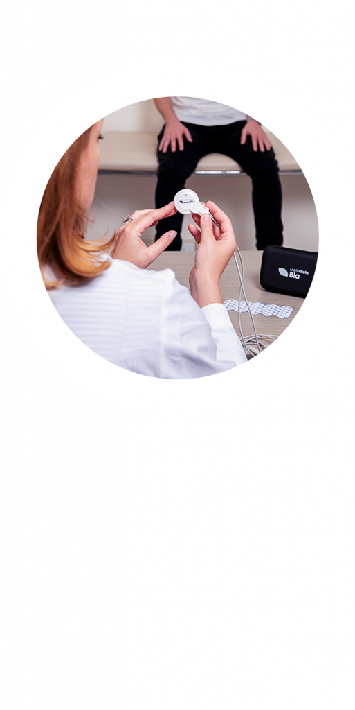 Consente un’analisi Total Body, fornendo analisi vettoriale (BIVA) e analisi BIA con le stime di idratazione (acqua totale, extracellulare, intracellulare) e di composizione corporea (BCM, FM, FFM).